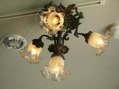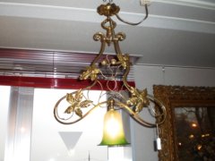 こちらはランタンです。ランタンと言ってもいろいろ御座いますが、こちらは大変珍しいランタンの一つです。形は変わっていますが、真鋳とステンドのコラボレーションは大変綺麗です。コレクターアイテムの一つです。