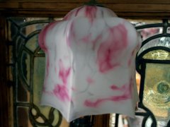 径15cmx高14.6cm英国製・1930年代・ガラス。実際、ライト付けると白の部分がライト色(オレンジ)・ピンクはそのままです。ライトをつけたときの方が可愛く・綺麗です。