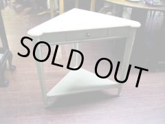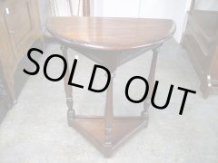 オークのコーナーテーブルになっております。各家にはコーナーは必ずあるものです。そこに飾りたいものがあればこれを台に使うと大変便利です。玄関先にスタンドランプを飾る際に使用するのも一つの案です。