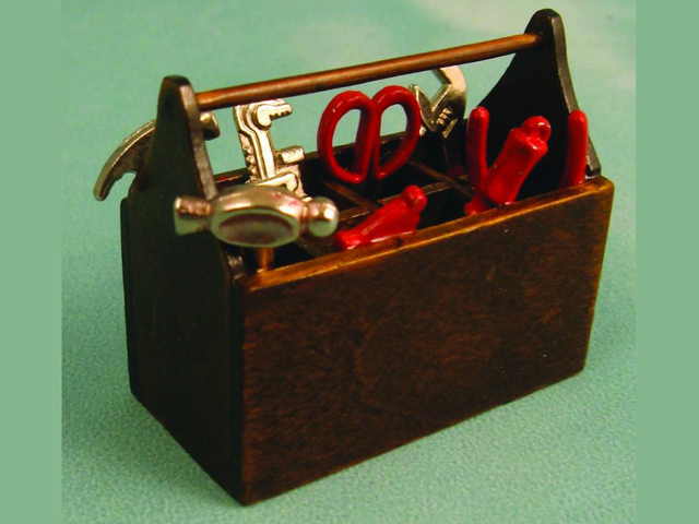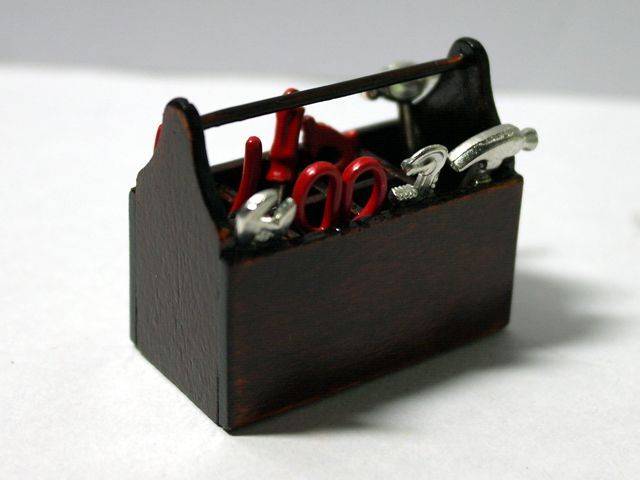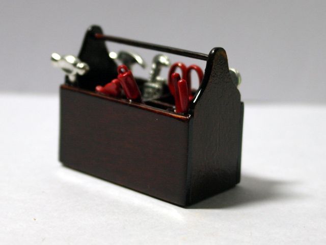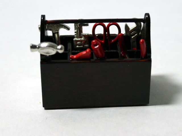 英国より直輸入 1/12サイズのドールハウス用品です。工具箱サイズ:w45 x d26 x h40mm工具は接着剤で固定されています。Toolbox & Tools(w:幅、d:奥、Ф:径、h:高)