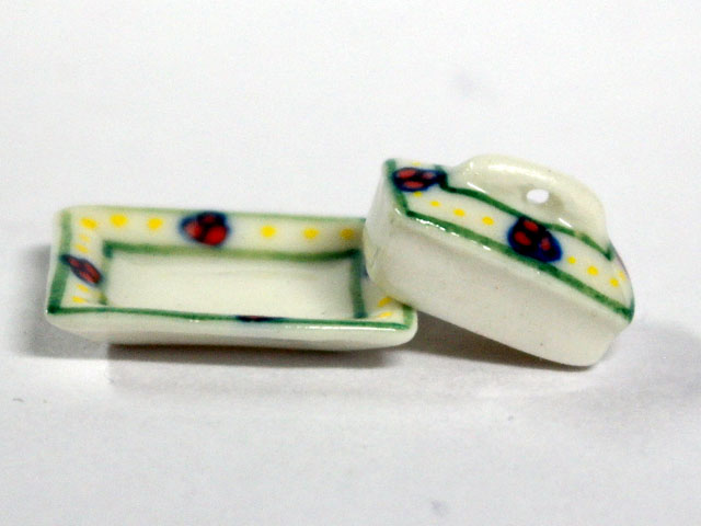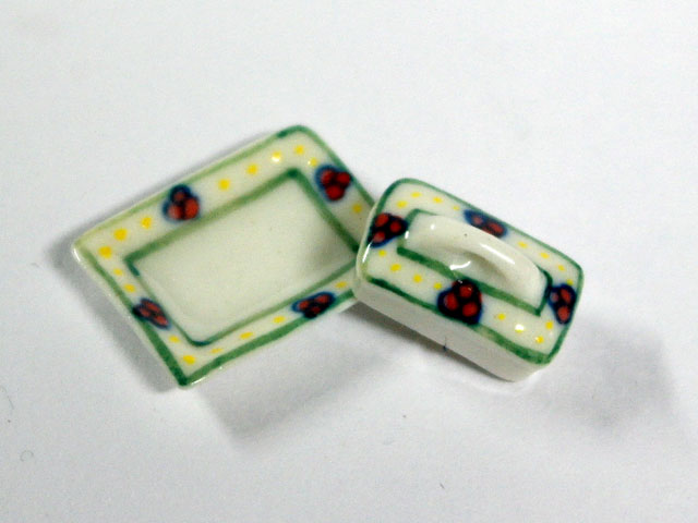 英国より直輸入 12分の1サイズの ドールハウス・アクセサリーです。・ディッシュ:w20 x d15 x h4mm・カバー: w15 x d8 x h10mm陶器Green Border(w:幅、d:奥、Ф:径、h:高)
