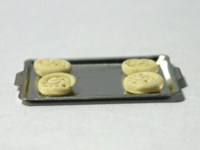 英国より直輸入 12分の1サイズのドールハウス・アクセサリーです。トレイ:w42 x d27mm接着剤で固定されています。Trays of Pastries(w:幅、d:奥、Ф:径、h:高)