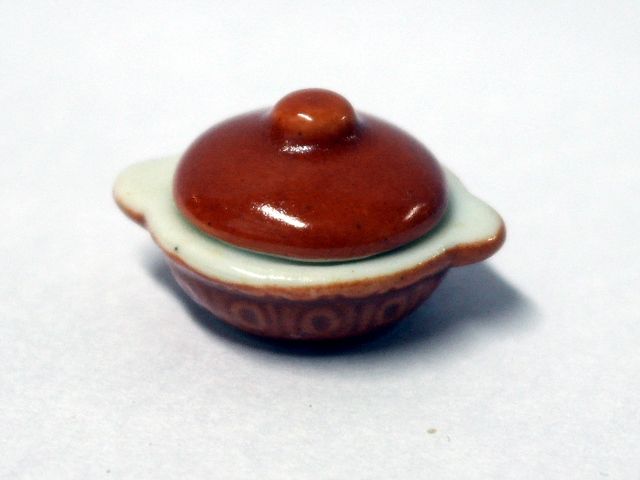 英国より直輸入 1/12サイズのドールハウス用品です。30x 25 x 17mm陶器Pot Rnd ServDish(w:幅、d:奥、Ф:径、h:高)