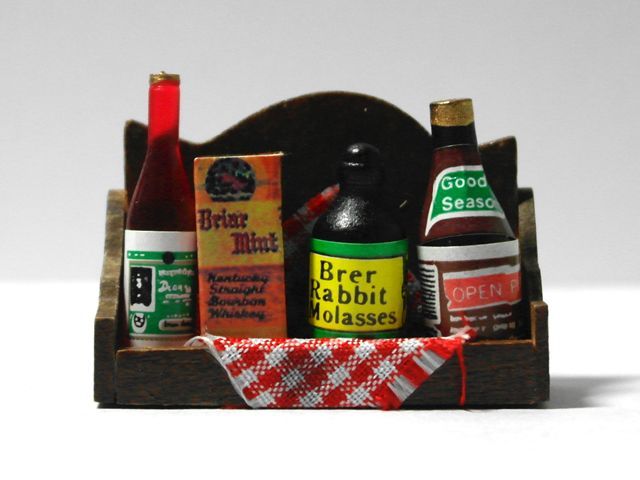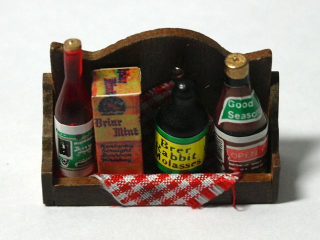 英国より直輸入 12分の1サイズのドールハウス・アクセサリーです。全体のサイズ:w53 x d17 x h40mm,接着剤で固定されています。生産ロットにより、棚の色が若干異なる場合がございます。Shelf w Grocery (w:幅、d:奥、Ф:径、h:高)