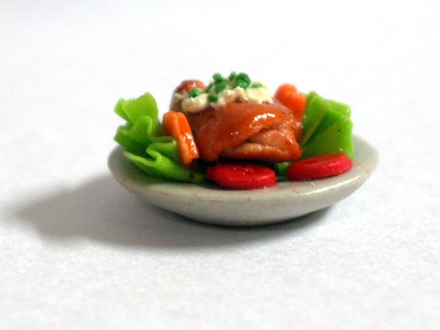 英国より直輸入 1/12サイズのドールハウス用品です。皿:約Ф28mmSalads on Plate(w:幅、d:奥、Ф:径、h:高)