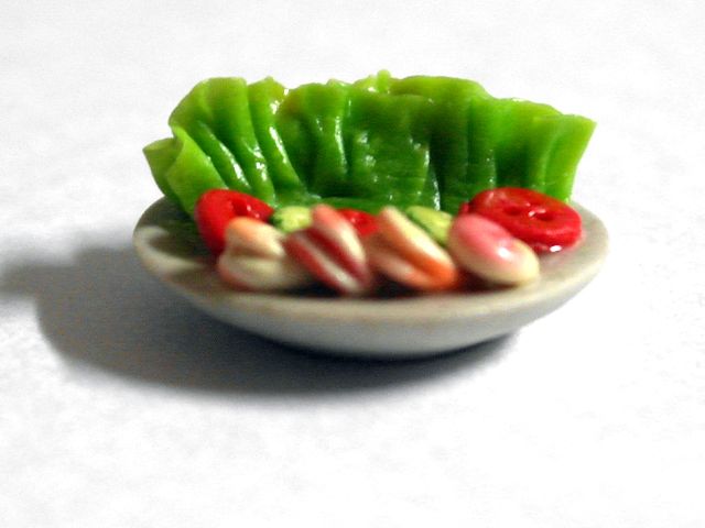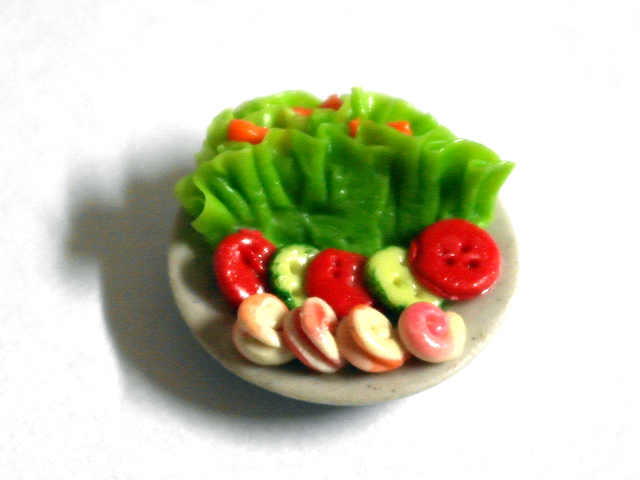 英国より直輸入 1/12サイズのドールハウス用品です。皿:約Ф28mmSalads on Plate(w:幅、d:奥、Ф:径、h:高)
