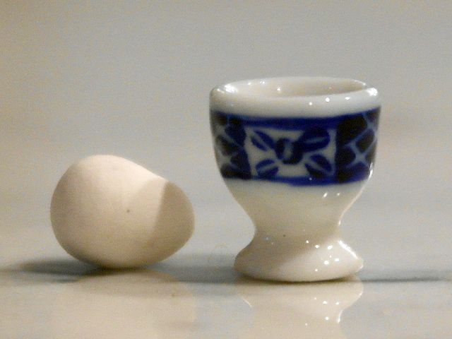 英国より直輸入 12分の1サイズのドールハウス・アクセサリーです。エッグスタンドのサイズ:Ф9mm×h10mmEgg Cup + Egg