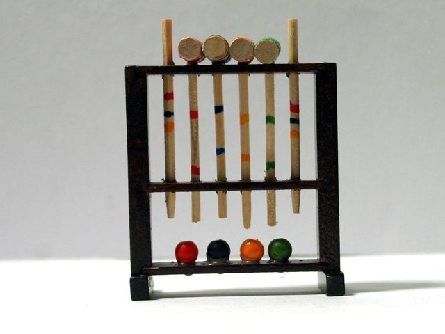 全体のサイズ: w 52mm x d15mm x h69mm備品は接着されています。Croquet Set(w:幅、d:奥、Ф:径、h:高)