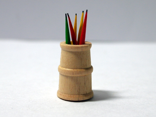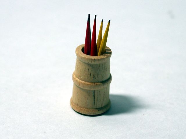 英国より直輸入 12分の1サイズの ドールハウス・アクセサリーです。全体のサイズ: Ф17mm x h40mm木製Pencil Pot(w:幅、d:奥、Ф:径、h:高)