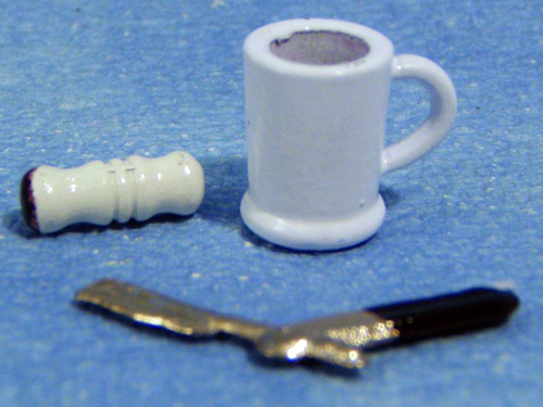 英国より直輸入 12分の1サイズの ドールハウス・アクセサリーです。コップのサイズ:w13 x Ф7 x h12mmCuthroat Razor Set(w:幅、d:奥、Ф:径、h:高)