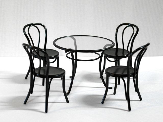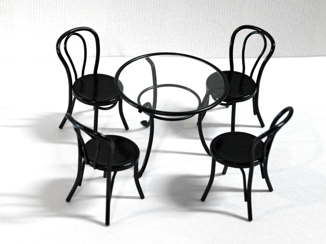 Set of Patio Table + 4 Chairs Table: 2.5" 6.3cmH. 3 1/4" 8.2cm Dia. Chair: 3 1/8"H. W4 x d5 x h8