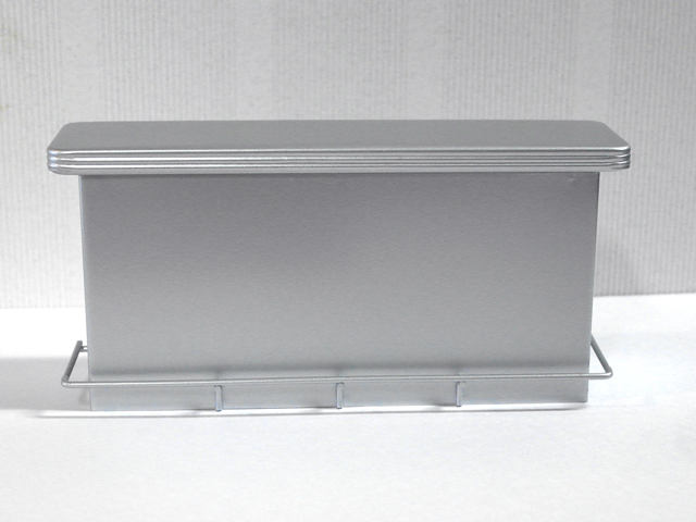 12分の1サイズのドールハウス商品です。1950'S STYLE COUNTER & 3 STOOLS, SILVER/GREENcounter w18 x d6 x h9, stool dia4 x h6.8