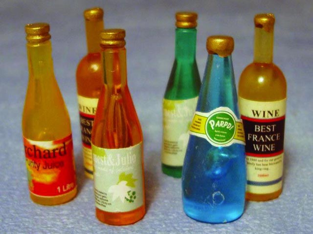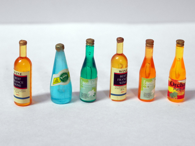 英国より直輸入 12分の1サイズのドールハウス・アクセサリーです。6 Mixed Wine Bottles