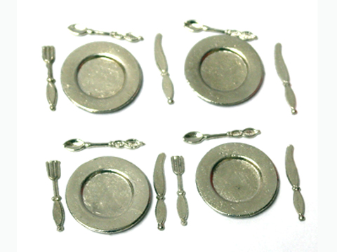 プレート:Ф27mm、カトラリー:長さ25mmMetal Plate/Cutlery 4place set(w:幅、d:奥、Ф:径、h:高)