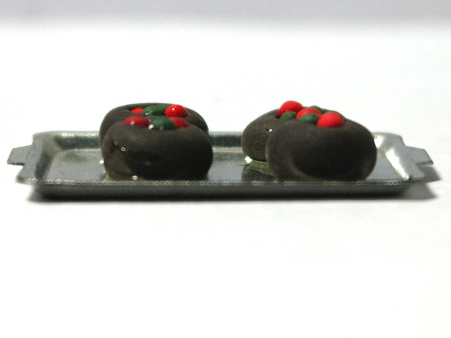 英国より直輸入 12分の1サイズのドールハウス・アクセサリーです。トレイ:w42 x d27mm接着剤で固定されています。Trays of Pastries(w:幅、d:奥、Ф:径、h:高)