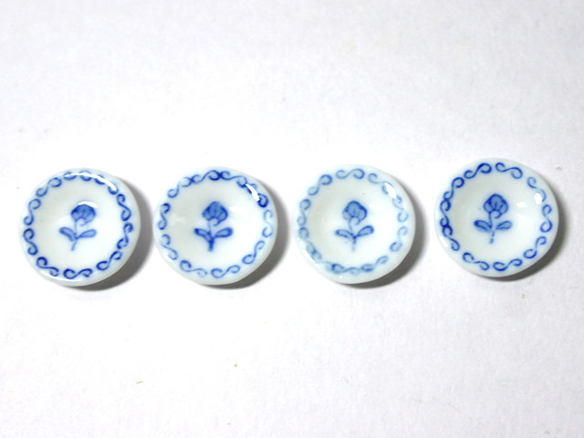 英国より直輸入 12分の1サイズの ドールハウス・アクセサリーです。ディッシュ:Ф19mm x h4mm陶器Blue Rose (w:幅、d:奥、Ф:径、h:高)