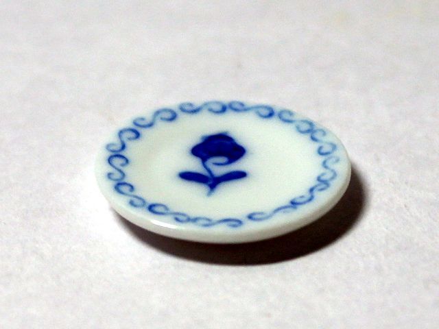 英国より直輸入 12分の1サイズの ドールハウス・アクセサリーです。プレート:Ф22mm陶器Blue Rose (w:幅、d:奥、Ф:径、h:高)