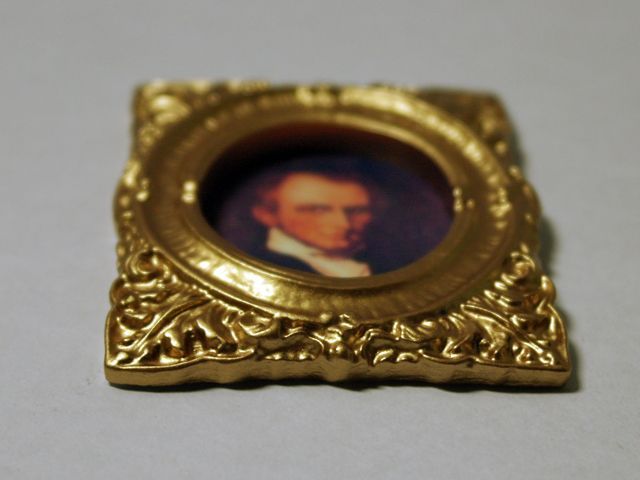 英国より直輸入 1/12サイズのドールハウス用品です。5.8 x 7.3cm x 0.5cm木製/金塗装・フレーム Oval gilt framed pics(w:幅、d:奥、Ф:径、h:高)