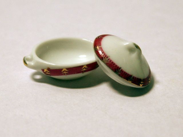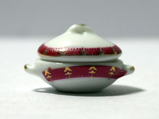 英国より直輸入 12分の1サイズの ドールハウス・アクセサリーです。チュリーン :w30 x Ф20 x h20mm陶器 Burgundy tureen(w:幅、d:奥、Ф:径、h:高)