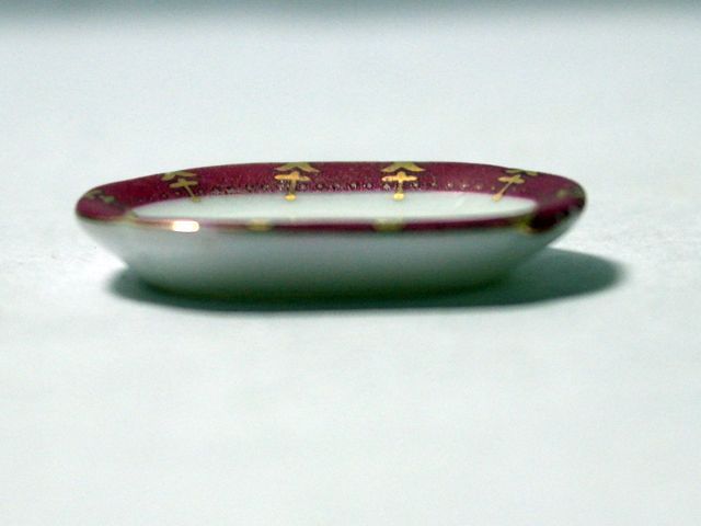 英国より直輸入 12分の1サイズの ドールハウス・アクセサリーです。オーバルプレート :w32 x d22 x h5mm陶器 Burgundy(w:幅、d:奥、Ф:径、h:高)