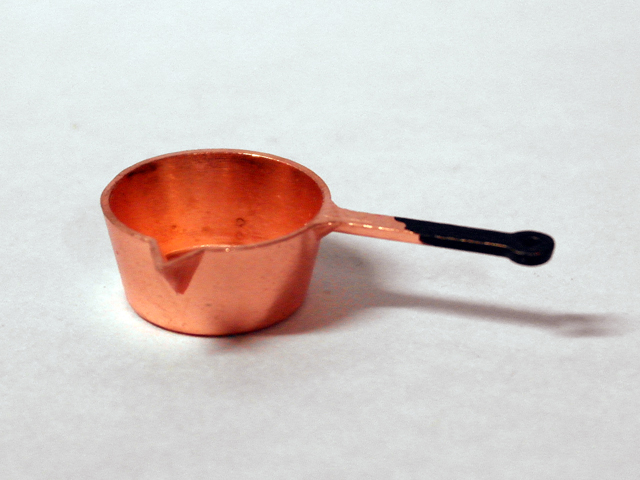 英国より直輸入 12分の1サイズのドールハウス・アクセサリーです。全体のサイズ:d30( Ф21 ) x w51 x h13mm Copper Cooking Pan(w:幅、d:奥、Ф:径、h:高)
