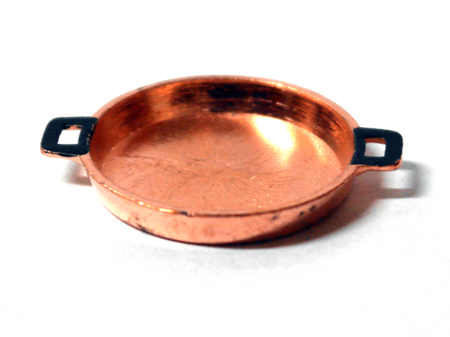 英国より直輸入 12分の1サイズのドールハウス・アクセサリーです。全体のサイズ:w41 x Ф32 x h5mm Copper Flat Pan(w:幅、d:奥、Ф:径、h:高)