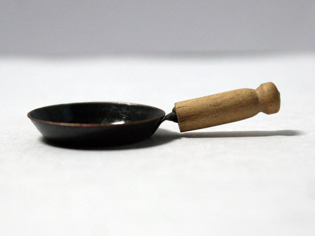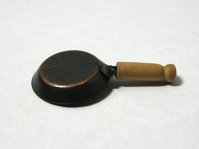 英国より直輸入 1/12サイズのドールハウス用品です。サイズ : Ф26mm x h5mm + 取っ手:約20mmメタル&木製 Frying pan(w:幅、d:奥、Ф:径、h:高)