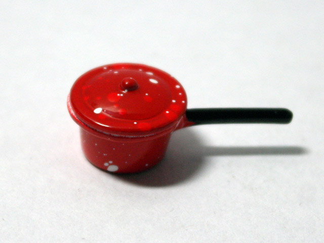 英国より直輸入 1/12サイズのドールハウス用品です。 全体のサイズ :w35 x Ф18 x h13mm Saucepan Red(w:幅、d:奥、Ф:径、h:高)