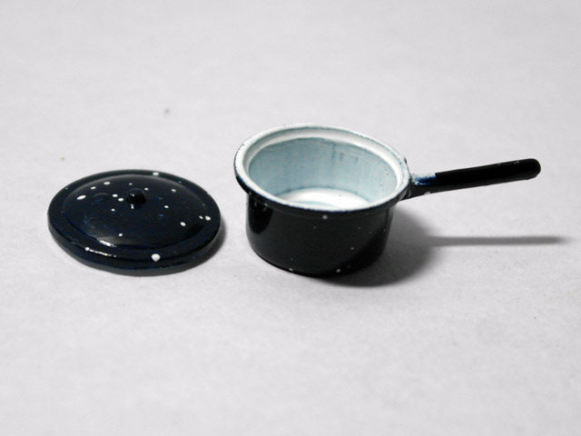 英国より直輸入 1/12サイズのドールハウス用品です。 全体のサイズ :w40 x Ф23 x h17mm Saucepan Blue(w:幅、d:奥、Ф:径、h:高)