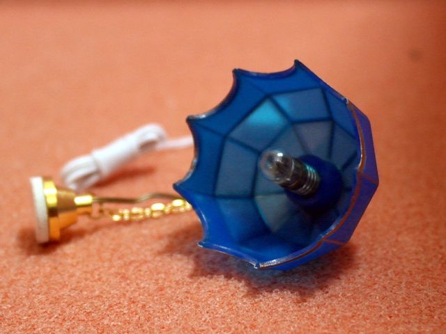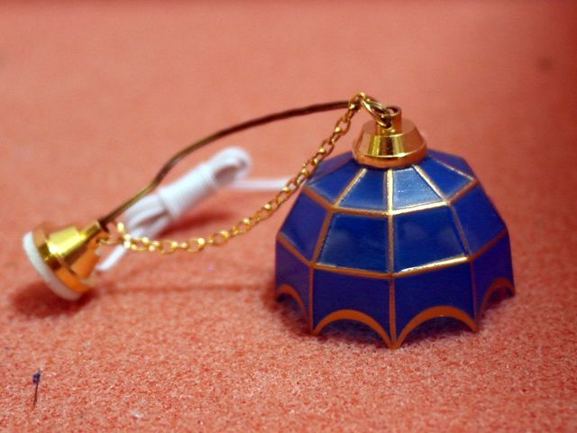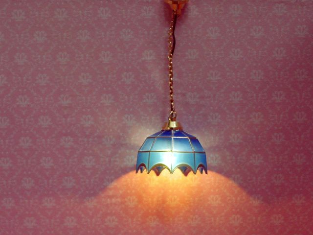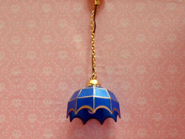 Hanging Tiffany Blue 35mm全体のサイズ: かさの径 38mm x 高さ 25mmドールハウス用 1/12サイズの12V用 電気照明器具です