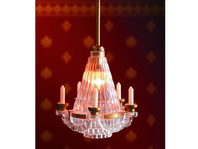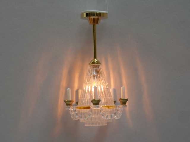 Chndlier 4 Imitation Candles全体のサイズ: 径 30mm x 高さ 60mmドールハウス用 1/12サイズの12V用 電気照明器具です