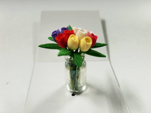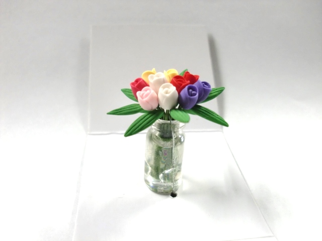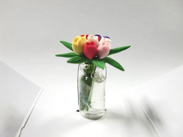 (w:幅、d:奥、Ф:径、h:高) cm :Ф1.0 x 2.2(vase) 、h3.5Tulips in Glass Vase