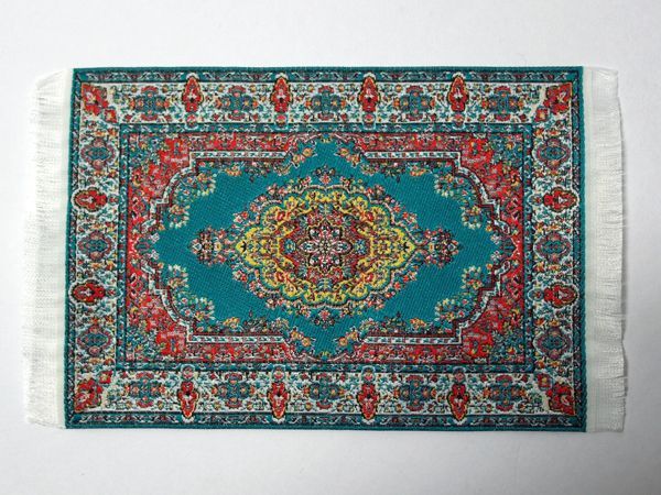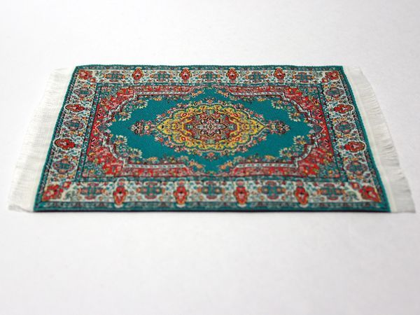 英国より直輸入 12分の1サイズのドールハウス・アクセサリーです。10 x 14cm (フリンジ込み16.3cm)Carpet Turq 10 x 14cm