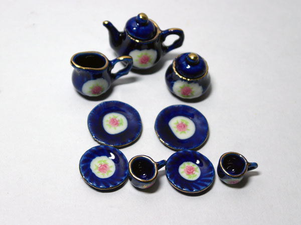 (w:幅、d:奥、Ф:径、h:高) cm :ケーキプレート:Ф2.2cm、オーバルプレート:4.7x3.0cm、プレート大 :Ф3.3cmBlue Rose Tea Set & Tray