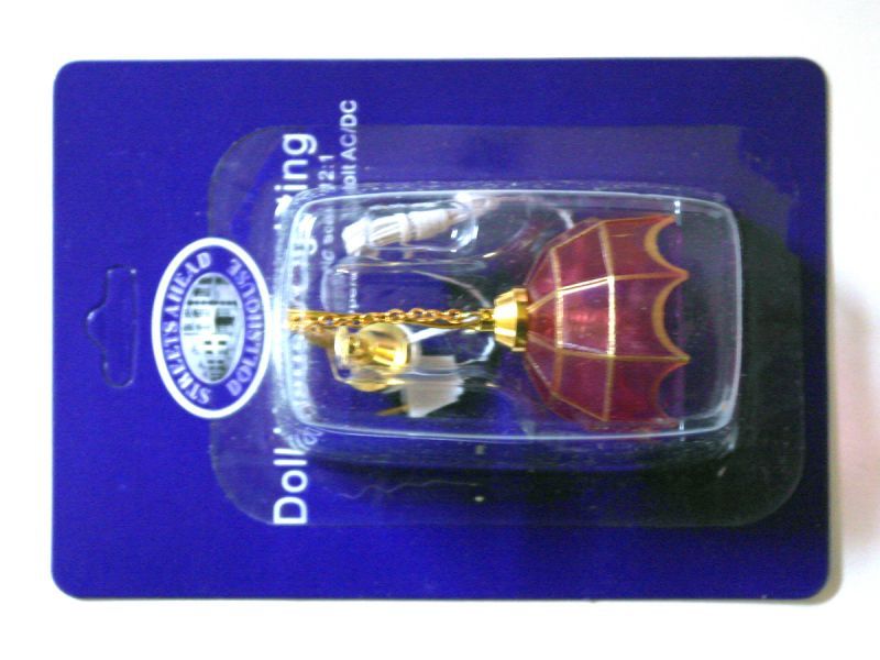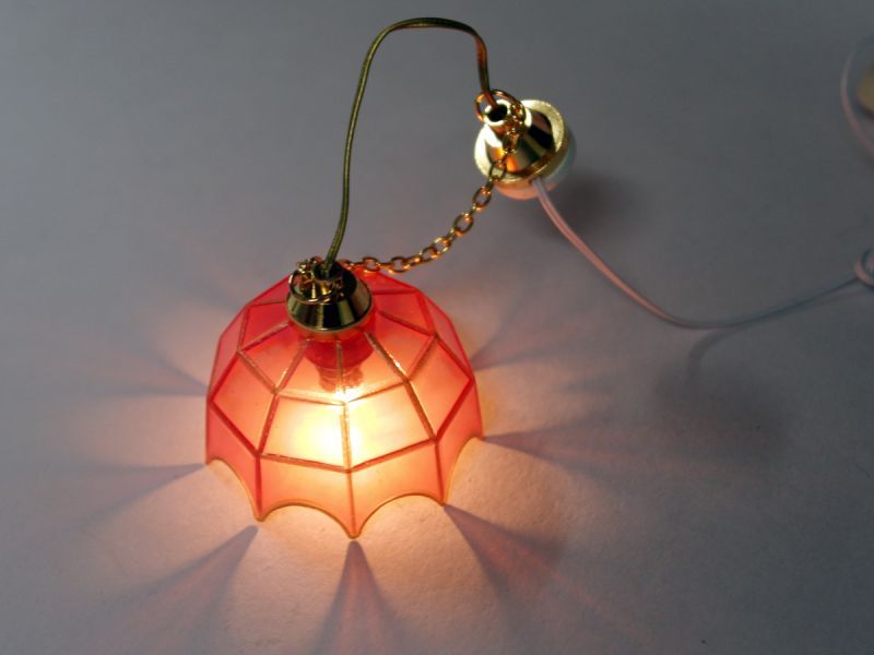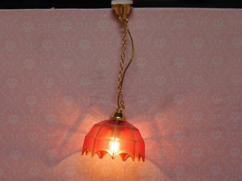 全体のサイズ: かさの径 37mm x 23mm 、 高さ90mm Hanging Tiffany Pink 35mmドールハウス用 1/12サイズの12V用 電気照明器具です