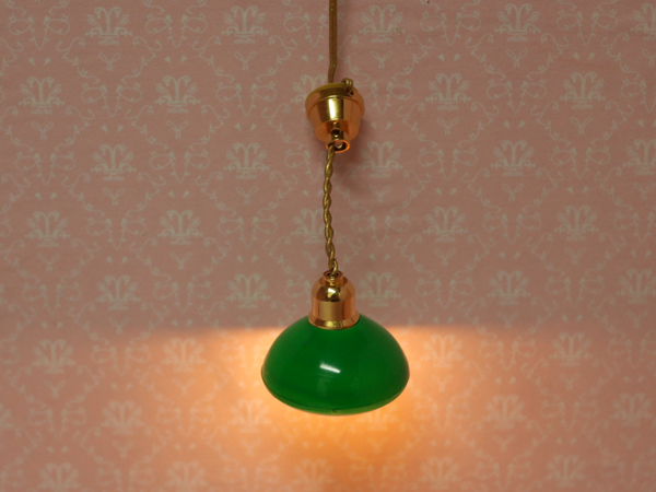 全体のサイズ: かさの径 38mm x 高さ 25mmgreen shade hanging lightドールハウス用 1/12サイズの12V用 電気照明器具です