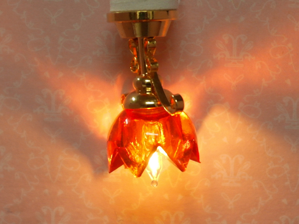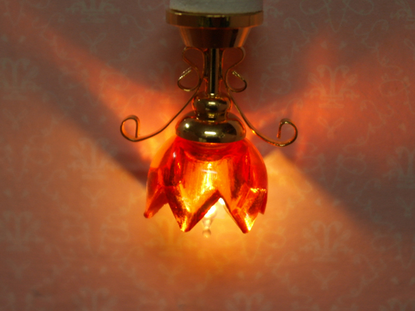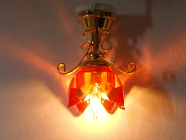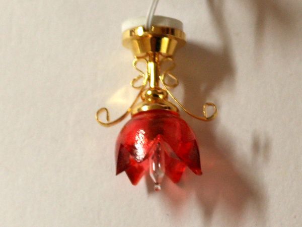 ドールハウス用 1/12サイズの12V用 電気照明器具です全体のサイズ: かさの径 16mm x w24mm x 高さ28mm (電球含まず)Lily Celing Light Red