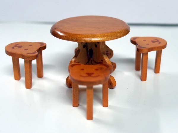 サイズ:テーブル:57 x 57 x 42mm / チェア: 27 x 27 x 28mmBear table&chairs
