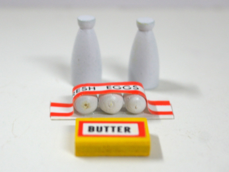 英国より直輸入 英国エンポリューム社製1/12サイズのドールハウス用品です。(w:幅、d:奥、Ф:径、h:高) : ミルク:Ф10 x 21mm エッグ:12 x 35 x 7mm バター:19 x 12 x 5mmEggs, Two Bottles of Milk, Butter
