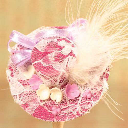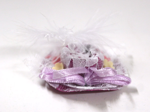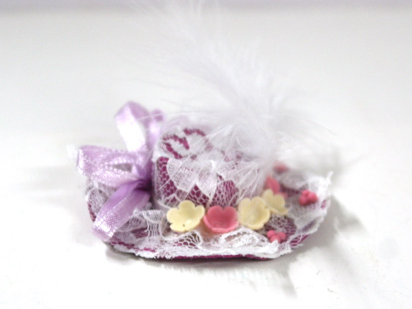 英国より直輸入 英国エンポリューム社製1/12サイズのドールハウス用品です。(w:幅、d:奥、Ф:径、h:高) cm : 50 x 45mmMagenta Lace & Feather Trim Hat