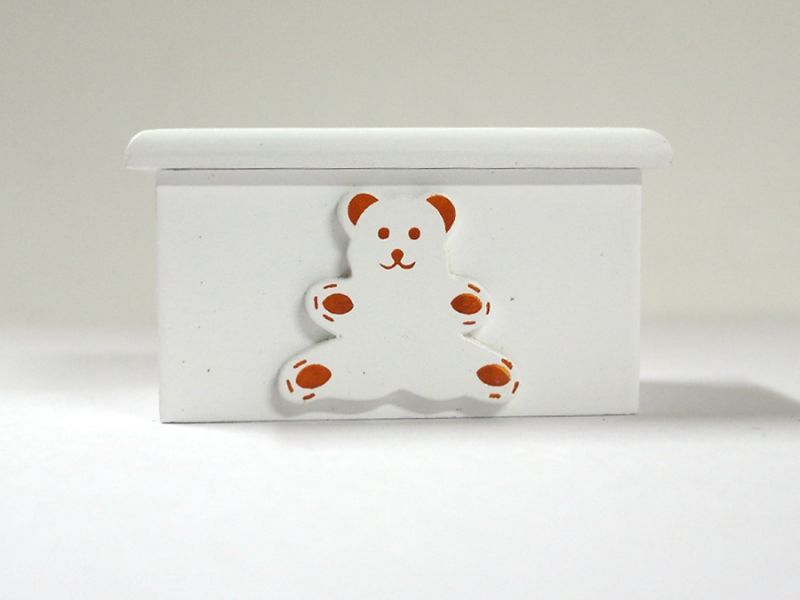 英国より直輸入 1/12サイズのドールハウス用品です。(w:幅、d:奥、Ф:径、h:高) cm :70 x 38 x 35mmWhite Bear Chest