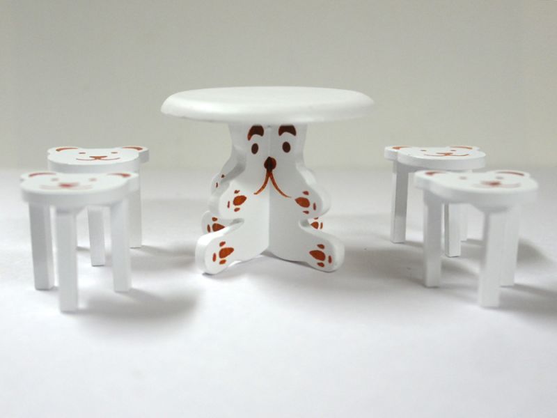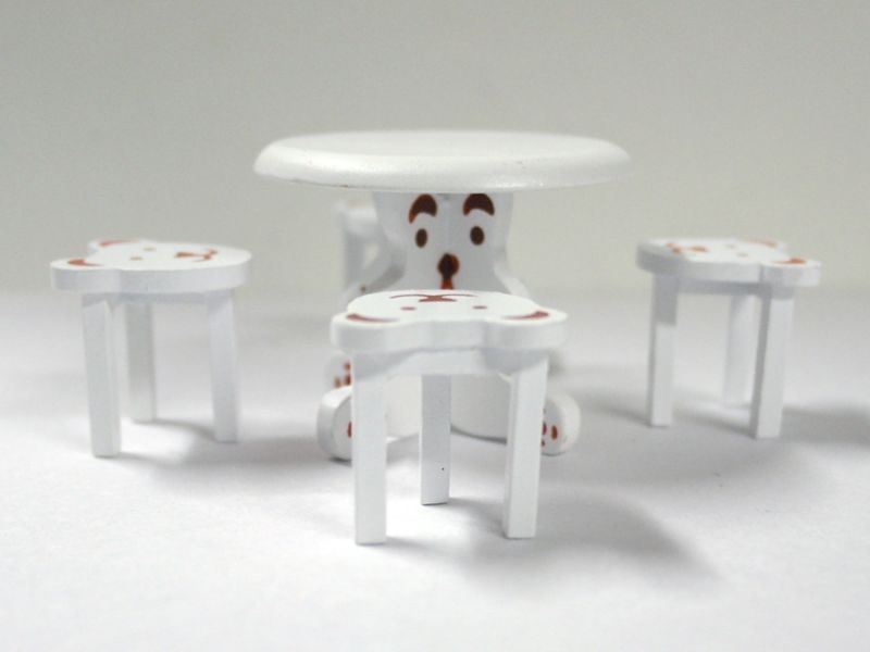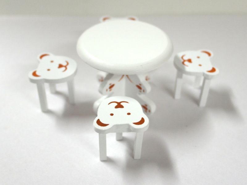英国より直輸入 1/12サイズのドールハウス用品です。(w:幅、d:奥、Ф:径、h:高) cm :テーブル:57 x 57 x 42mm / チェア: 27 x 27 x 28mmWhite Bear Bear table&chairs