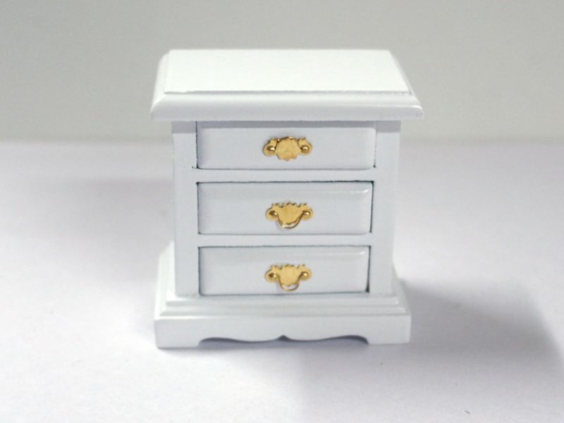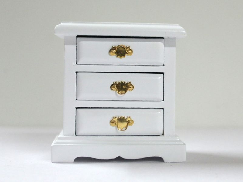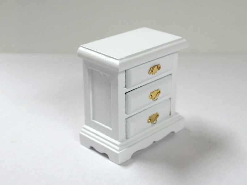 英国より直輸入 1/12サイズのドールハウス用品です。(w:幅、d:奥、Ф:径、h:高) cm :170 x 132 x 151mmWhite Bedside Drawers (DF1514)