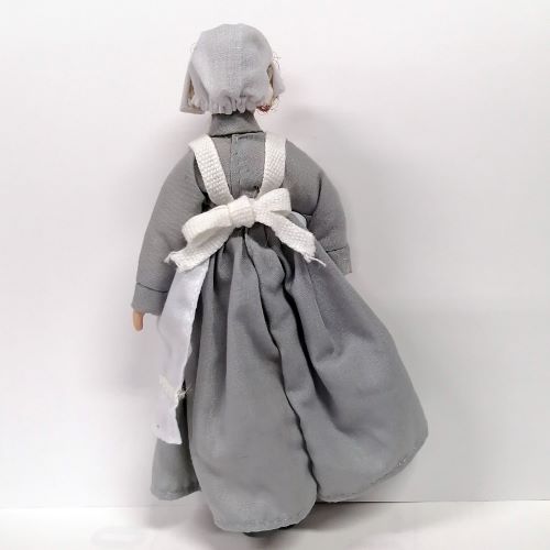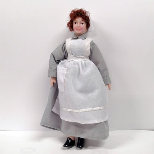 Beryl the cook in apron & grey dress. Doll height 145mm.