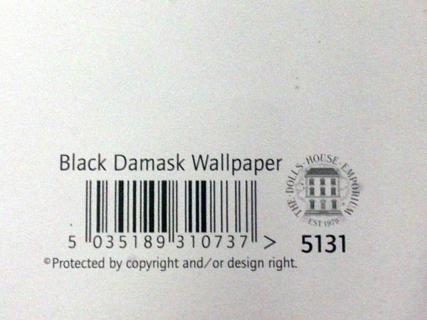 1/12サイズのドールハウス用品です。Black Damask Wallpaper 430 x 600mm