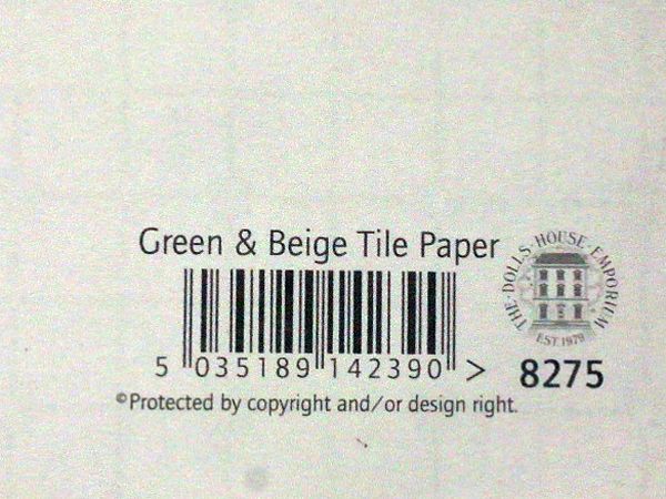 1/12サイズのドールハウス用品です。Green & Beige Tile Paper 430 x 600mm