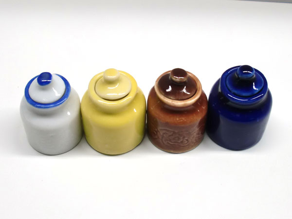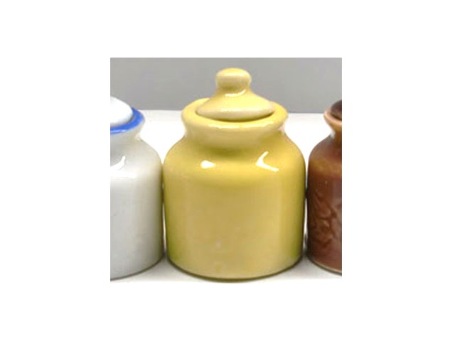 英国より直輸入 1/12サイズのドールハウス用品です。 Storage Jar yellow高:30mm、(径)21mm手作り品のため、色の濃淡が1個1個違いますのでご了承ください。