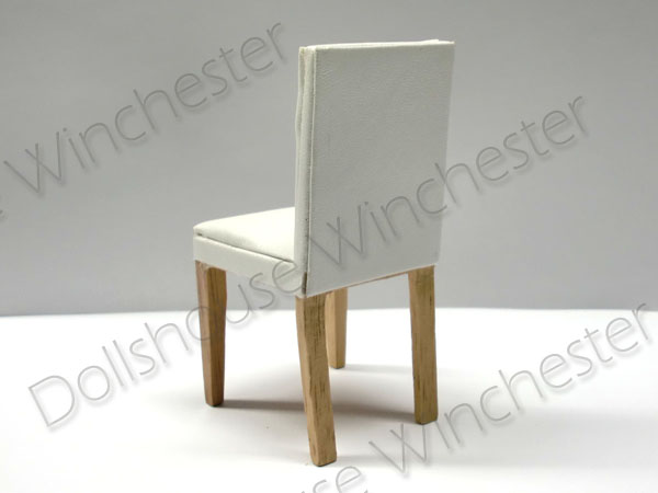 英国より直輸入 1/12サイズのドールハウス用品です。Cream 'Leather' Dining Chairサイズ: 47x48x96 mm*注:商品によっては、入荷前のメーカー側での接着剤のあふれやしみ、塗装のはがれ、木材の割れ、歪みなどの問題が多少ございますのでご容赦ください。