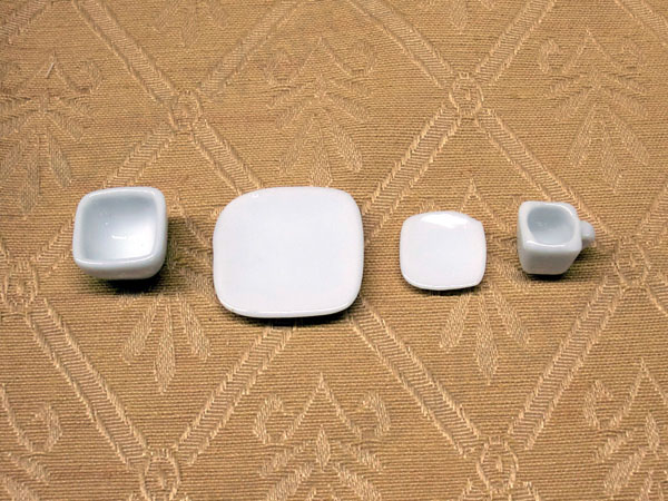 英国より直輸入 1/12サイズのドールハウス用品です。White Square Crockery, 16 pcsサイズ: plate 25x25x mm