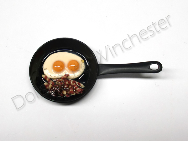 英国より直輸入 1/12サイズのドールハウス用品です。Frying Pan with Bacon & Eggsサイズ: 49x26x7 mm